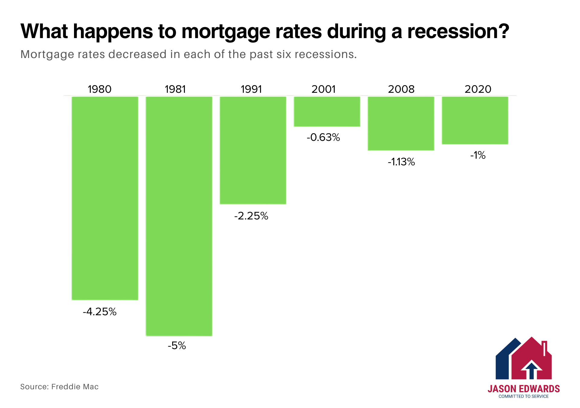 Freddie Mac data shows rates declined in all six of the last U.S. recessions: